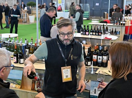 Commercial du Château Saint-Cyrgues (Costières de Nîmes), Damien Pastor confirme un tiers d’étrangers dans tous les contacts noués durant le salon : "On voit beaucoup de cavistes, grossistes, qui représentent le plus gros de nos ventes au national, mais aussi des représentants de la grande distribution. Ils commencent à y venir car les chiffres d’affaires des foires au vin traditionnelles sont en baisse."